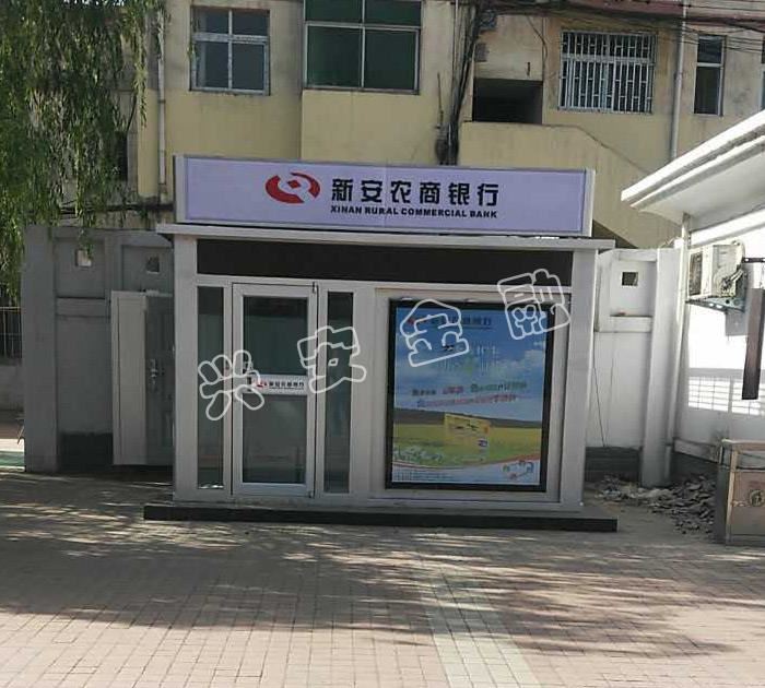 自助銀亭由五部分組成:加鈔區(qū)設(shè)備間、自助交易區(qū)、VI形象燈箱、底座、地基